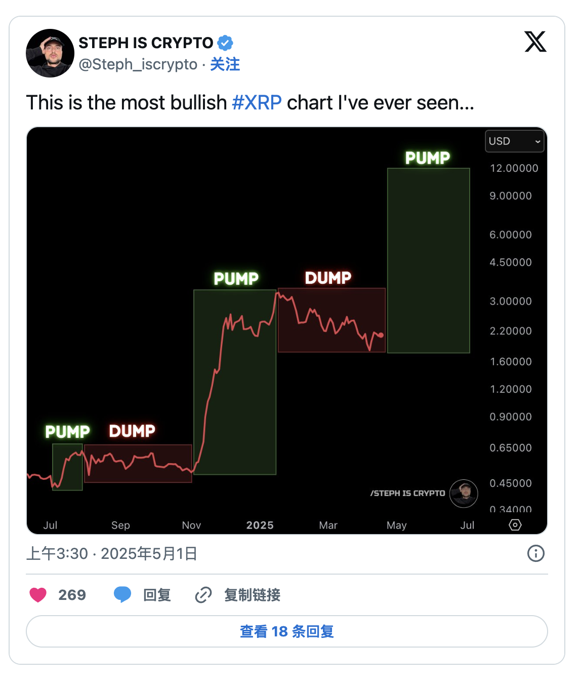 分析師Steph is Crypto最近分享了一個簡單直接的XRP價格預測,概述了該代幣典型的熊市與牛市週期。