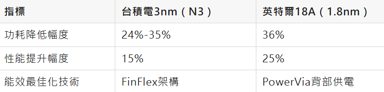 英特爾的“18A”實為1.8nm級製程,對標台積電的2nm(N2)而非3nm。但根據行業換算,英特爾18A性能與台積電N3相當,部分指標接近N2。