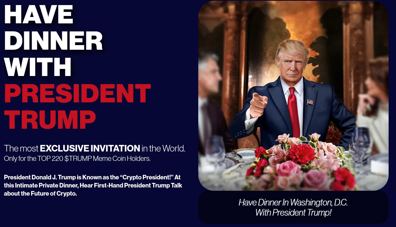 根據外媒《WIRED》的計算,要想在特朗普國家高爾夫俱樂部的大宴會廳內,在水晶吊燈下贏得一個晚宴席位,投資者需至少持有 4,196 枚 TRUMP 幣,按當前市價估算,價值約為 55,000 美元。 (截至今日正午價格計算)