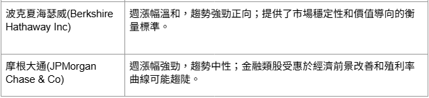 我們焦點列表中的主要美國企業表現普遍強勁,由科技股和成長型股票領漲。輝達(NVIDIA)上周大漲+15.36%,直接受惠於圍繞AI晶片貿易的正面情緒。其他大型科技股如特斯拉(+22.88%)、亞馬遜(+7.03%)、Meta Platforms(+7.08%)、微軟(+3.67%)和博通(+10.03%)亦顯著上揚,反映投資者重燃對科技股的熱情。
