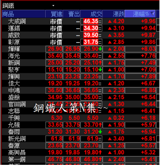 鋼鐵股位子低 爆量點火拉抬