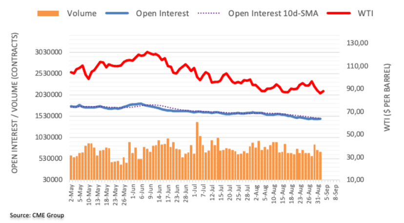 週四,WTI價格在86.00美元以下的幾個月低點徘徊,未平倉量和成交量都在減少。也就是說,短期內可能會出現反彈,儘管關鍵的200日移動均線約96.25美元暫時繼續限制大宗商品的上行潛力。