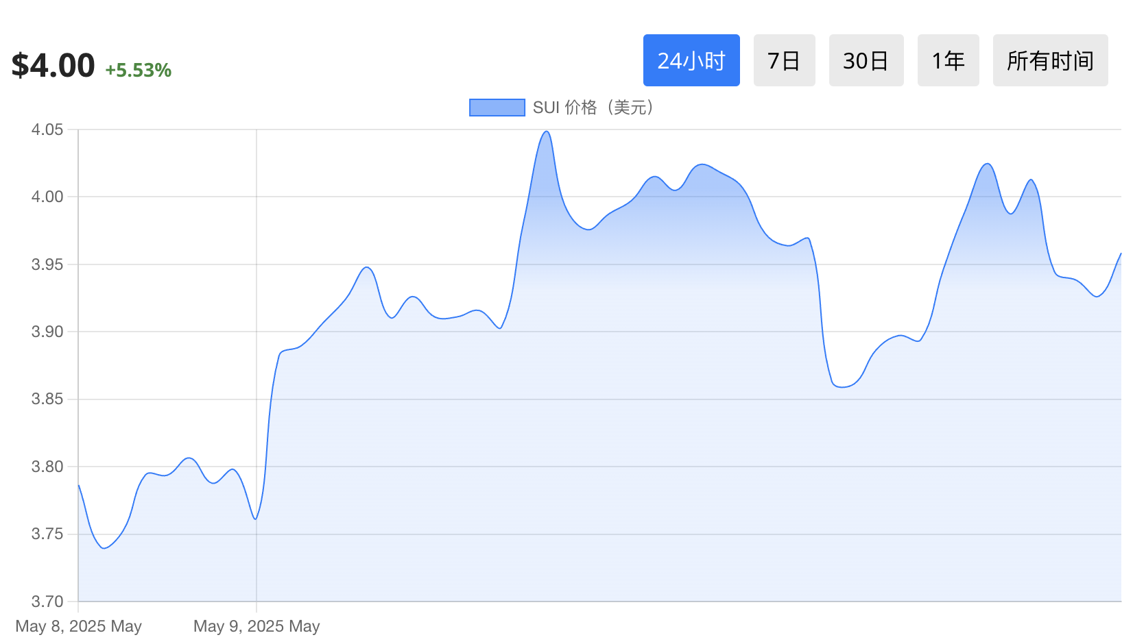 SUI 在過去一個月上漲了 84%,最近一周也上漲了 20%,成功突破 4 美元(約 580 日元),為 1 月以來首次。