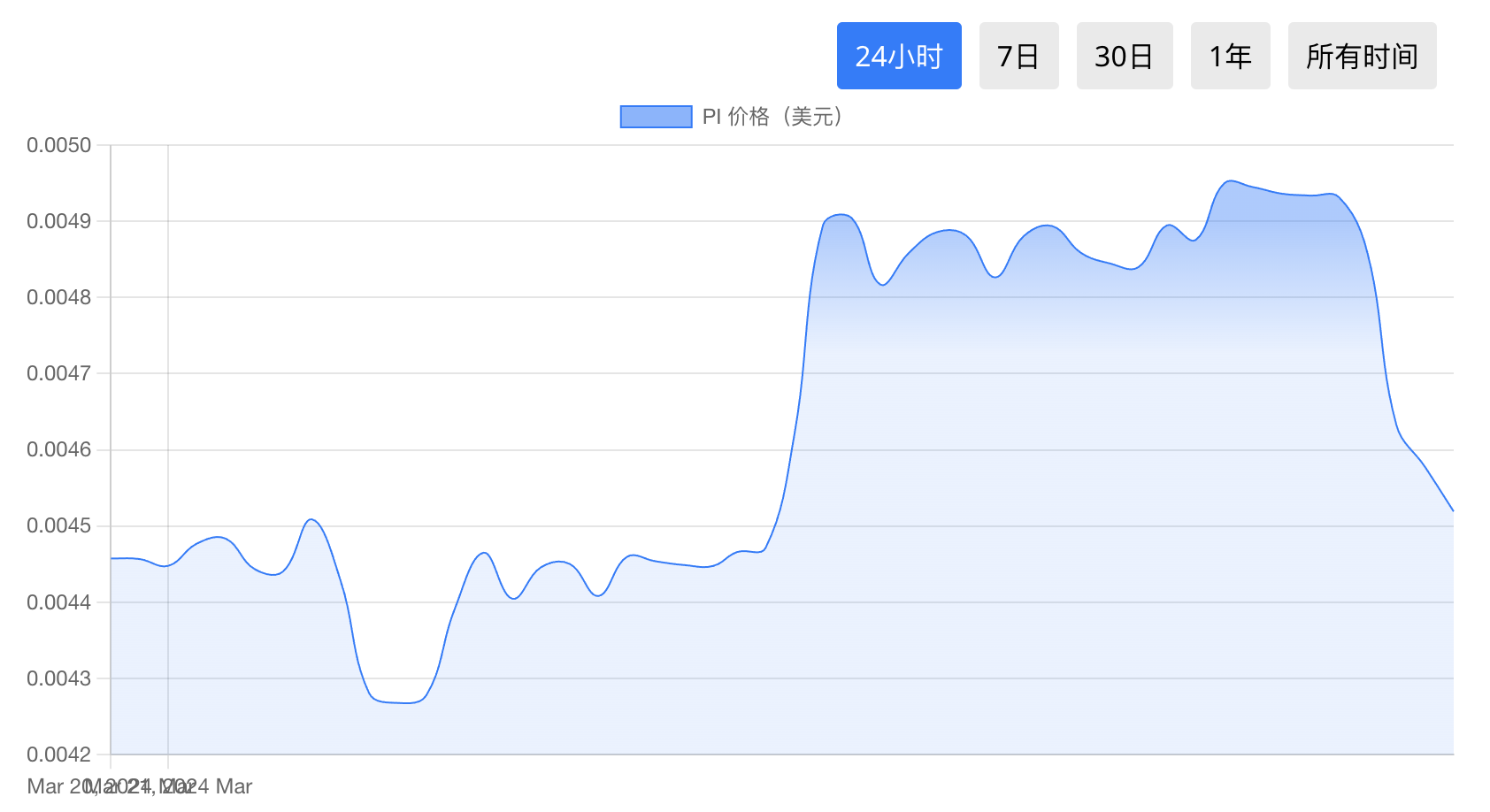 從 3 月底到 5 月初,PI 長期維持在 1 美元以下,但過去一周已成功重回 1 美元關口。
