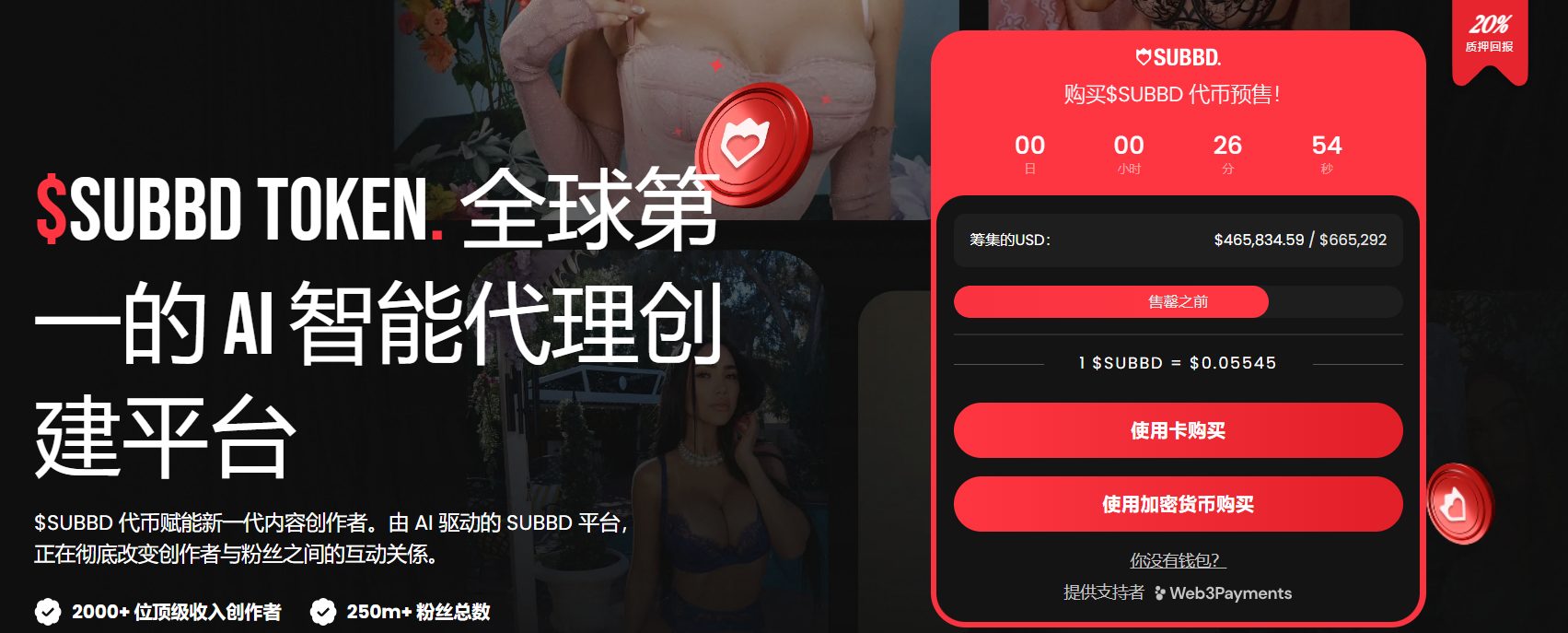 隨著迷因幣市場整體前景持續好轉,目前市場上一些熱門加密貨幣預售項目,例如 SUBBD(SUBBD),正受到越來越多投資者關注。