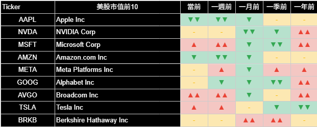 美國前十大企業表現好壞參半,博通(Broadcom Inc.)(+1.60%)表現突出,錄得上漲並維持其非常強勁的正向趨勢,顯示投資者信心持續。相反地,特斯拉(Tesla Inc.)則出現顯著的單日跌幅(-1.65%),儘管其整體趨勢依然正向。輝達(NVIDIA Corp.)(-0.51%)在其備受期待的財報公布前微幅下跌,趨勢維持中性。微軟(Microsoft Corp.)(-0.72%)亦下跌,雖然其趨勢仍為正向,但已較先前更強的評估有所趨緩。蘋果(Apple Inc.)(+0.10%)微幅上漲,但仍深陷極度負面的趨勢。Meta Platforms Inc.(+0.20%)小幅走高,但其趨勢從強勁正向轉為中性,顯示向上動能顯著減弱。