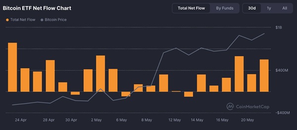 以貝萊德的iShares Bitcoin Trust(IBIT)為例,其單日淨流入達到5.3億美元——是其近兩周以來的最高紀錄。
