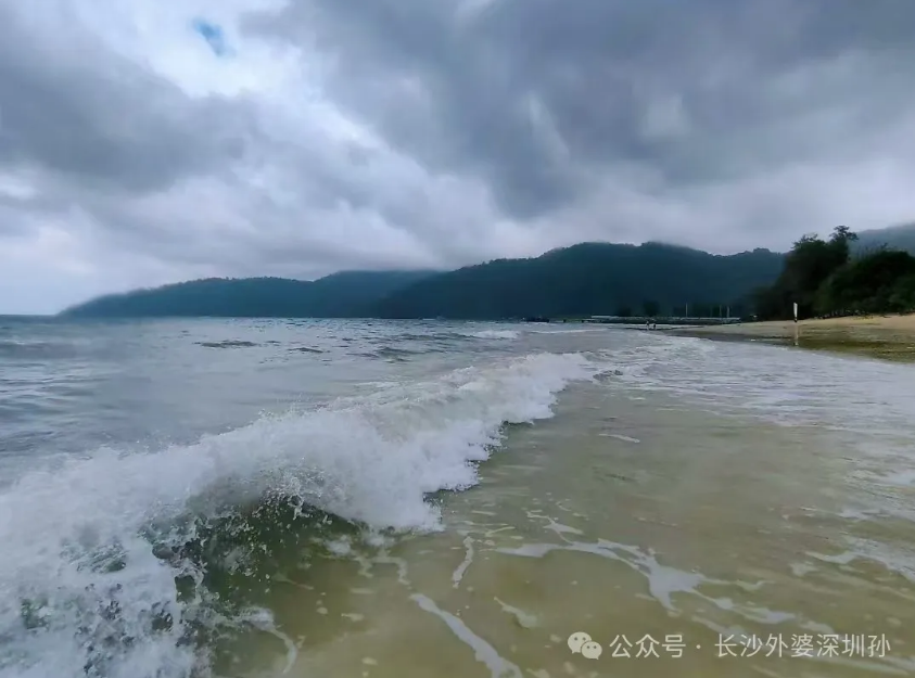 我們下海踏浪,觀賞日落,怎奈天空時雨時晴,厚厚的雲層遮擋了太陽回家的路。