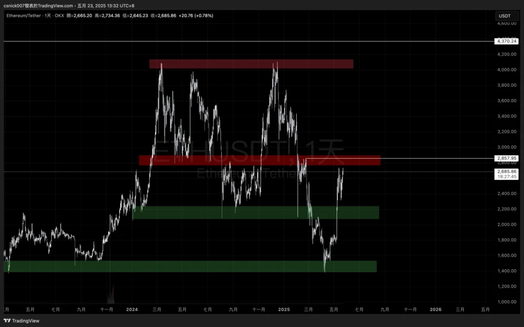 若以樂觀角度切入, BTC 後續的表現透露的是日線~週線級別強勢站穩在 109,800 之上,ETH 也同樣突破壓力區間 2,800~2,900,那麼本文提及的多頭風險將大幅度降低。