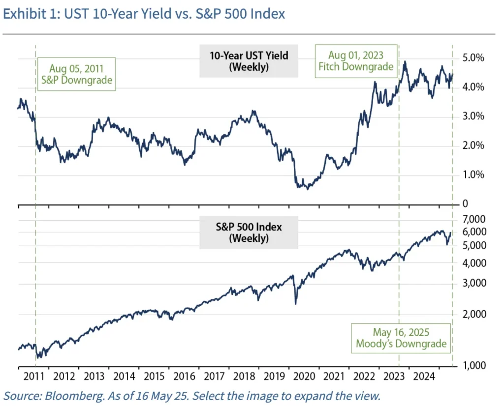 綜合而言,穆迪之所以能在下調評級的同時維持穩定展望,正是因為上述結構性優勢尚未動搖。雖然短期內美國面臨財政與債務挑戰,但其經濟體量、金融體系深度、制度穩定性與全球地位,構成了當前信用風險的堅實防火牆。在這樣的背景下,即使評級出現調整,對市當前場的實質衝擊是相對有限。