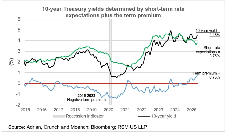 10年期美債殖利率的構成 – 短期利率預期與期限溢酬