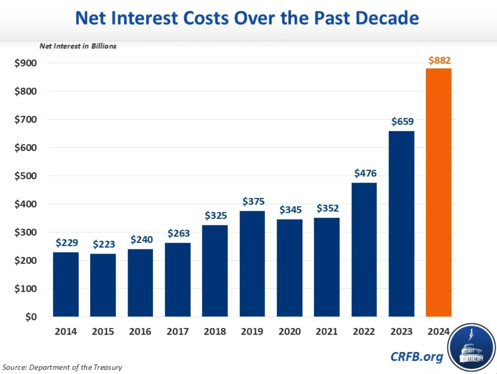 圖 (一):美國過去10年的淨利息成本 (Source: Department of the Treasury)