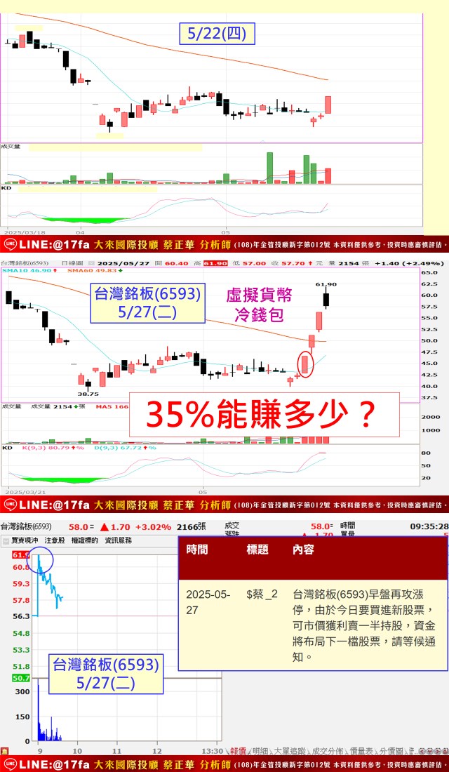 今天台灣銘板第四根漲停,可以先賣一半