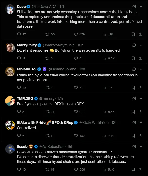 然而,部分社群質疑 Sui 作為一條「去中心化」的區塊鏈,官方不應有權力凍結鏈上的任何資產和交易,這明顯和區塊鏈抗審查的特性背道而馳。