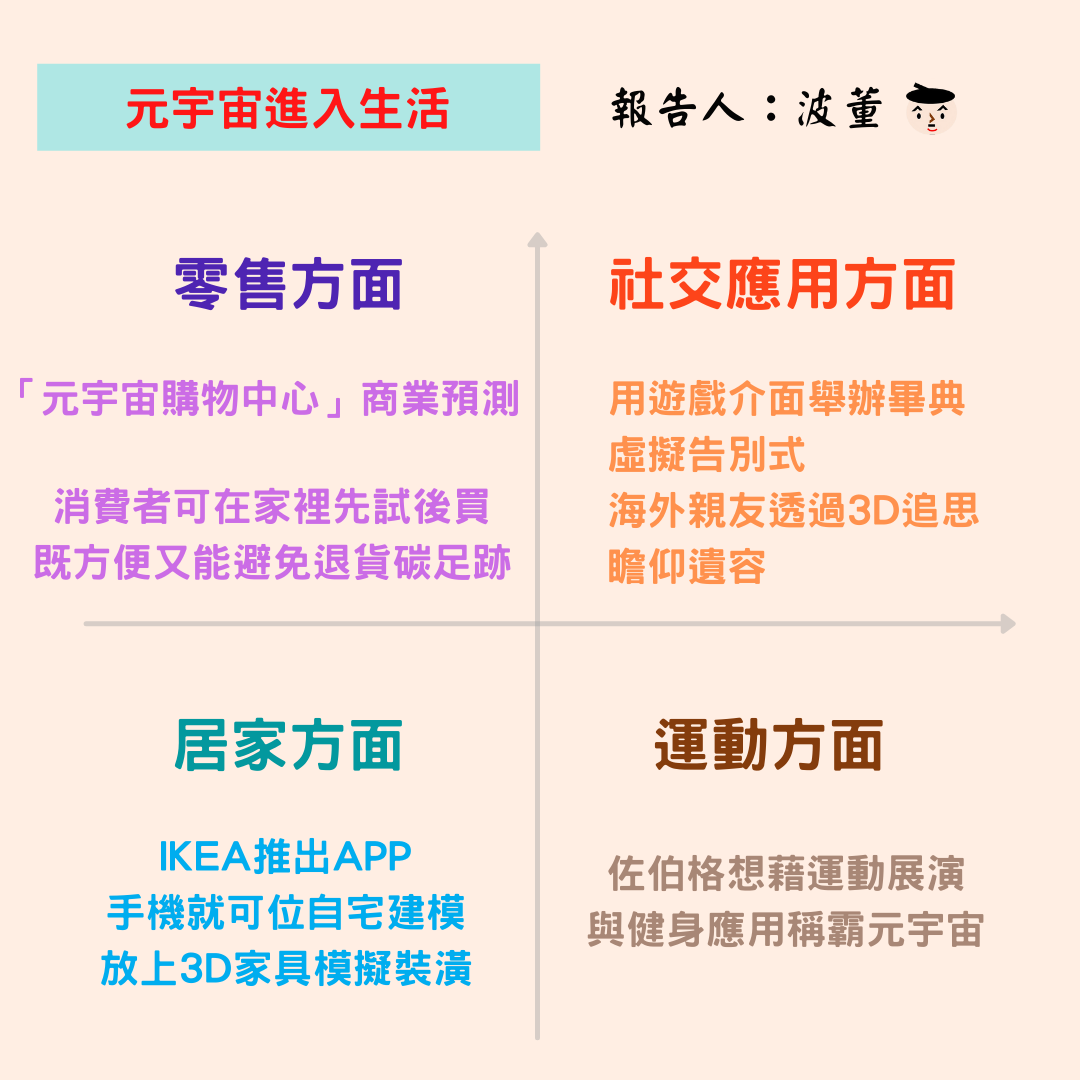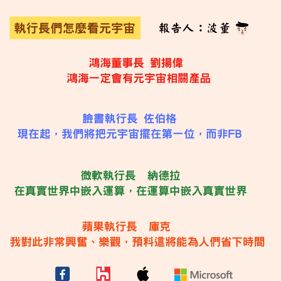 波波結語:很清楚的看到,未來的日子我們勢必要和元宇宙一同存活,這也將是未來投資的趨勢,