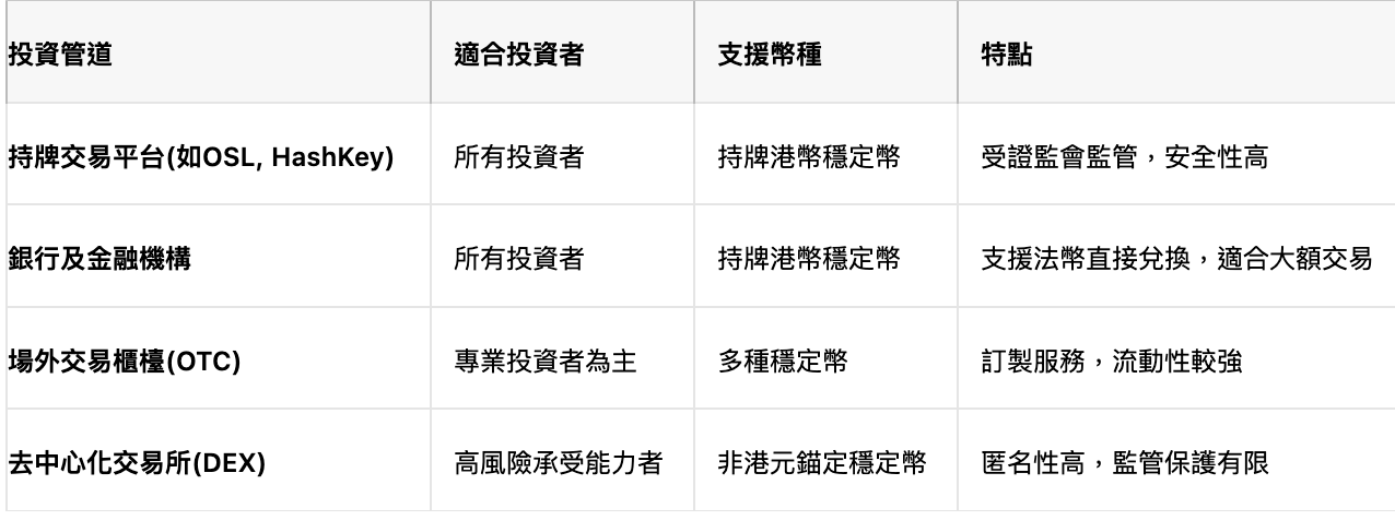 ➤ 需注意:僅支援非港幣錨定穩定幣(如USDT、USDC),且風險較高。