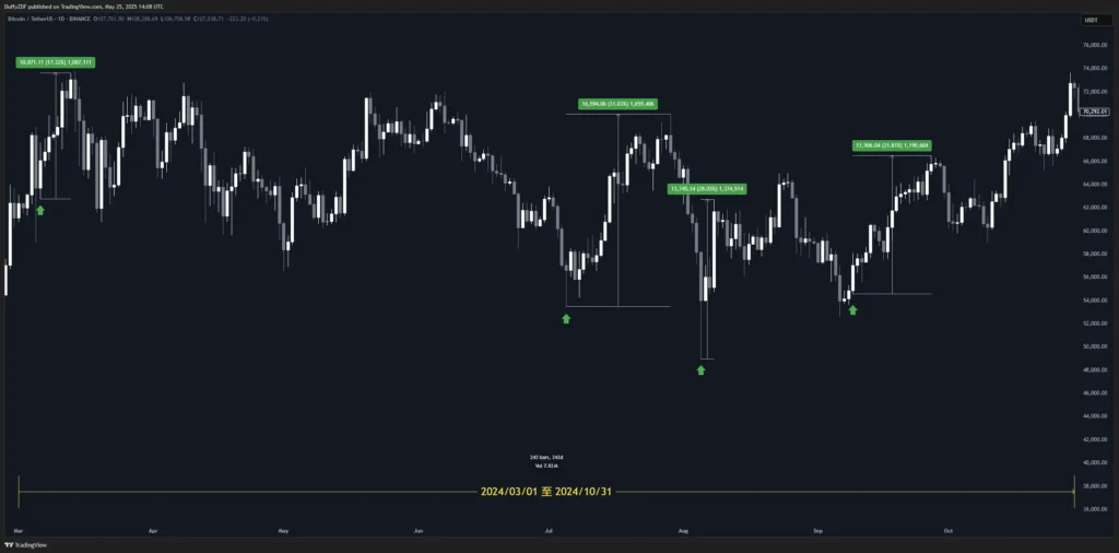 我們發現當滿足特定條件時,BTC 通常會有明顯且持續的上漲趨勢,將有助於交易者和投資人做出更精準的判斷。