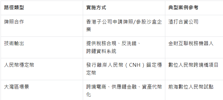牌照申請與資本合作。直接以香港子公司申請穩定幣發行牌照,需滿足2500萬港元資本金及技術合規要求。或參股已進入沙盒的企業(如圓幣科技HKDR項目),降低初期投入風險。中銀香港、工銀亞洲等在港機構具備先發優勢。