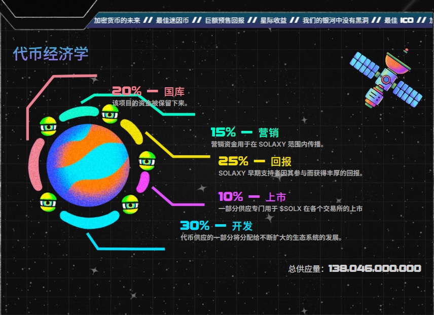 Solaxy 是一個建構在 Solana 上的 二層網路(Layer-2)項目,$SOLX 代幣是其核心燃料,主要用於支付交易手續費,實現更快、更低成本的轉帳。 此外,$SOLX 還支援以下功能:質押(Staking)賺取獎勵;DeFi 工具:包括借貸、兌換(Swap)等模組;跨鏈互換功能:支援 Solana 與 Ethereum 之間的跨鏈資產互通。