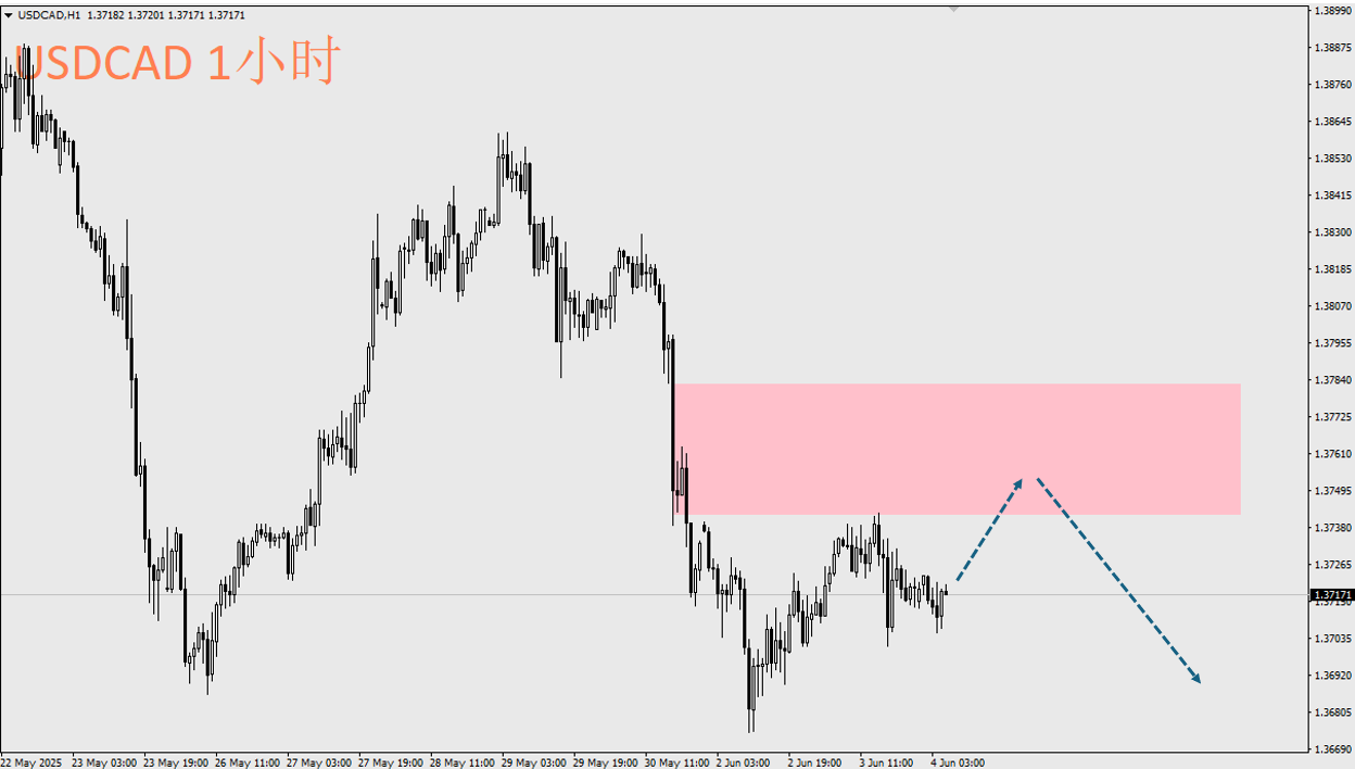 技術面:USDCAD自5月30日再次跌破1.3750潛在支撐後,已連續3天收盤價位保持在其之下,顯示原先的支撐反彈強勁力道並未出現,因此目前可以等待向上小幅反彈後的做空機會。