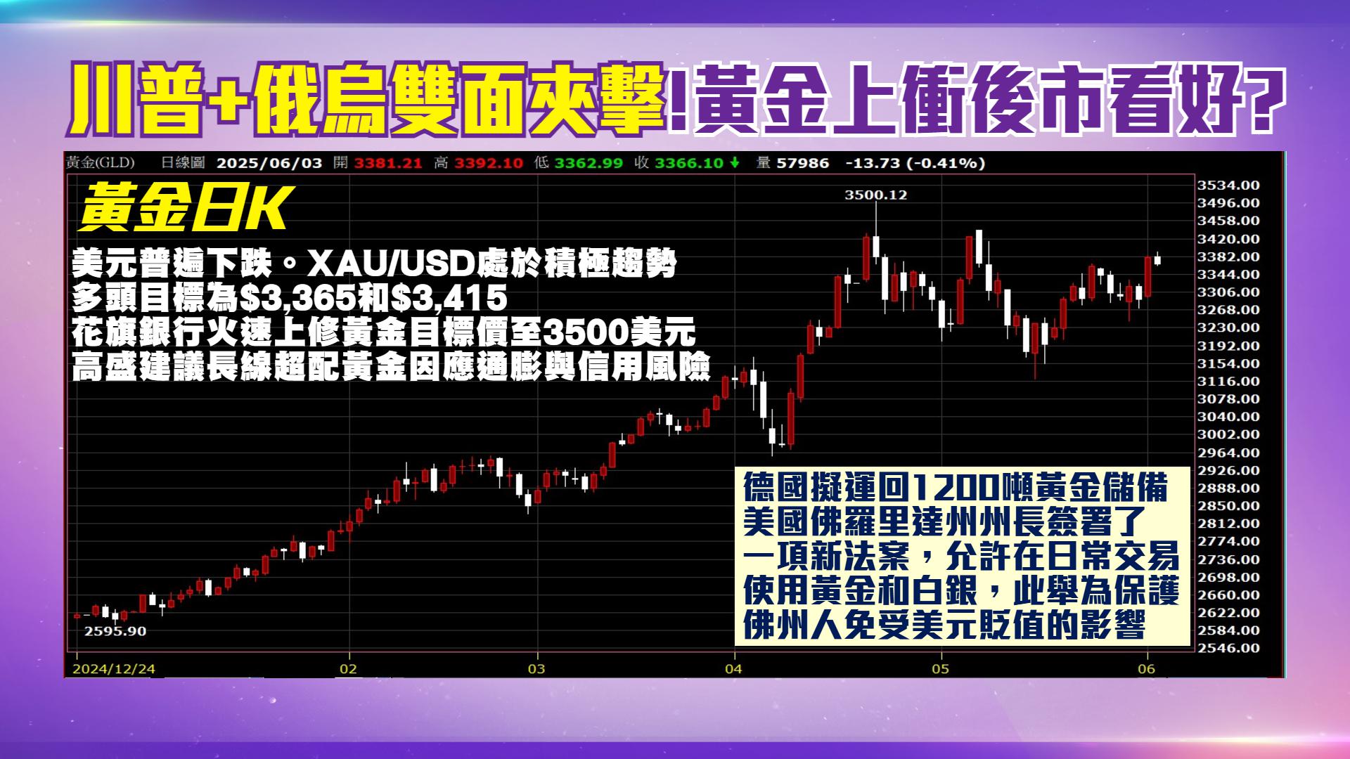 川普宣布自6/4起將進口鋼鐵與鋁產品關稅提高至50%,強調「保護美國製造」。此舉立刻引爆全球貿易緊張,國際金融市場避險情緒瞬間飆升,同時俄烏衝突再度升溫;在多重風暴夾擊下,黃金避險買盤狂湧,國際金價本週開盤即飆破2900美元,市場押注價格將再創新高。花旗銀行火速上修黃金目標價至3500美元,高盛亦建議長線超配黃金因應通膨與信用風險