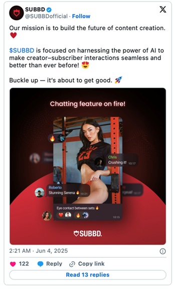 SUBBD ($SUBBD)是一個由 AI 驅動、加密原生的創作者平臺,已經上線,正在成長,並且遠遠領先於任何模仿者。它已經提供了 Subs 目前僅在宣傳中的功能:真正的所有權、對受眾的直接控制,以及更優的創收方式——沒有中間商抽成。