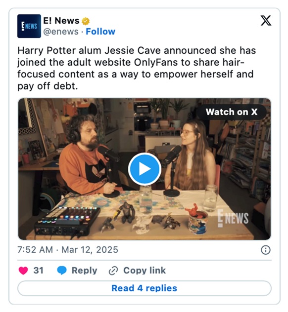 因此,當《哈利·波特》演員 Jessie Cave 表示,內容創作比演戲更聰明、更快幫她還清債務時,沒人會感到驚訝。