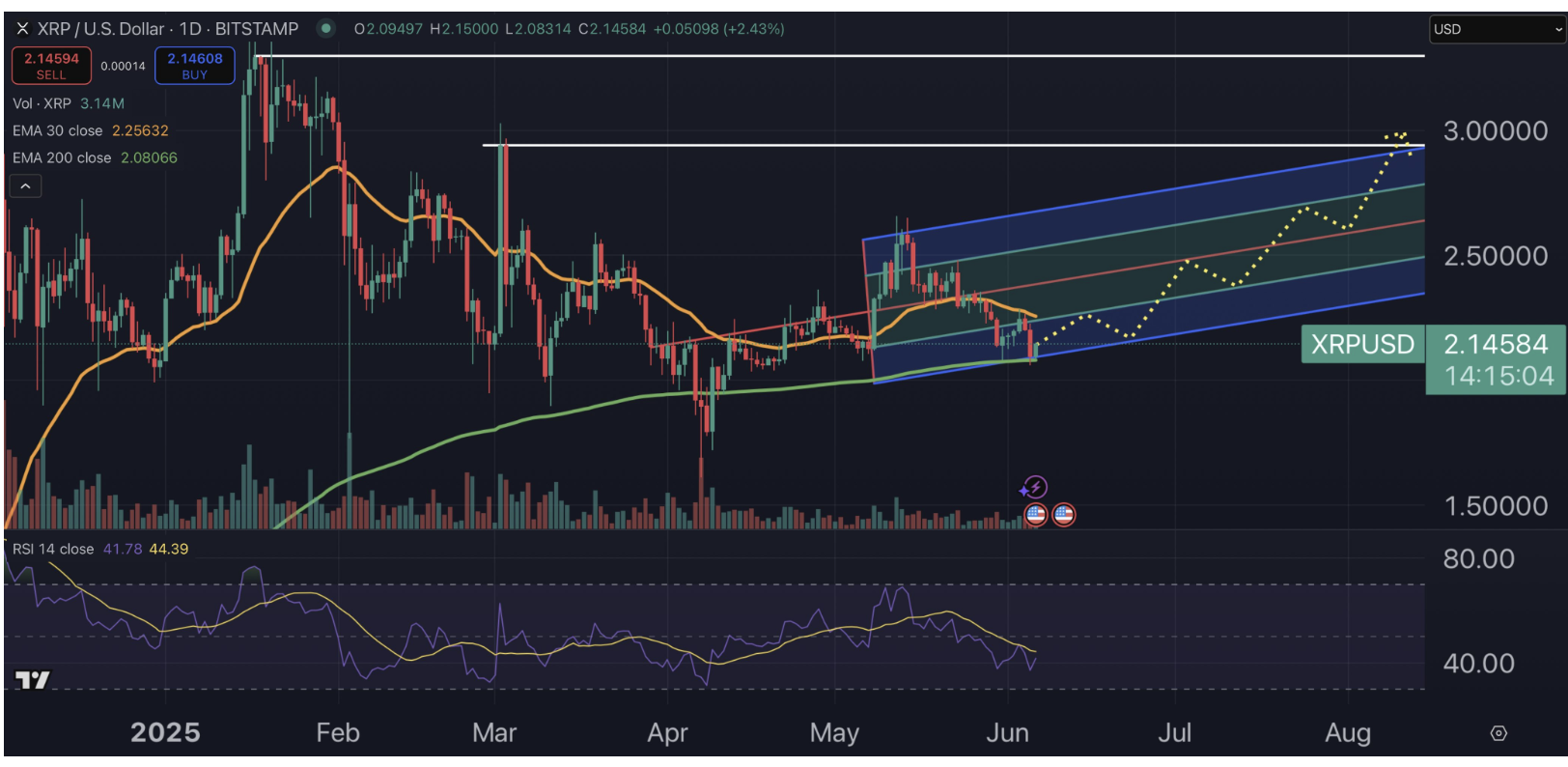 XRP預計在本月底觸及2.50美元,並在不久後升至3美元。