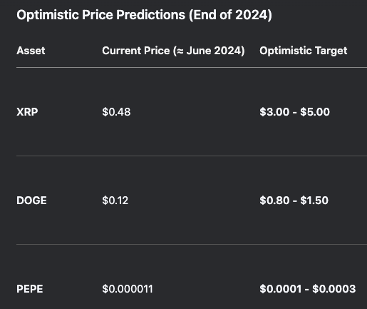 在此背景下,DeepSeek AI 點名了一批具有爆發潛力的山寨幣(Altcoins),並給出了它對這些幣種的價格走勢預測。下方表格整理了此模型的核心觀點與關鍵數據,供投資人參考。