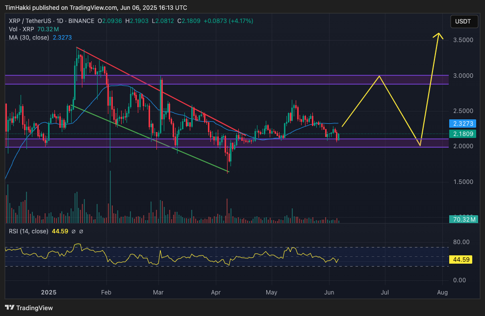 從技術面來看,XRP依然穩穩守住了2美元的支撐位。分析師預計,其價格預計在年中前將突破3美元。如果多頭動能持續,XRP全年觸及5美元區間並非難事。
