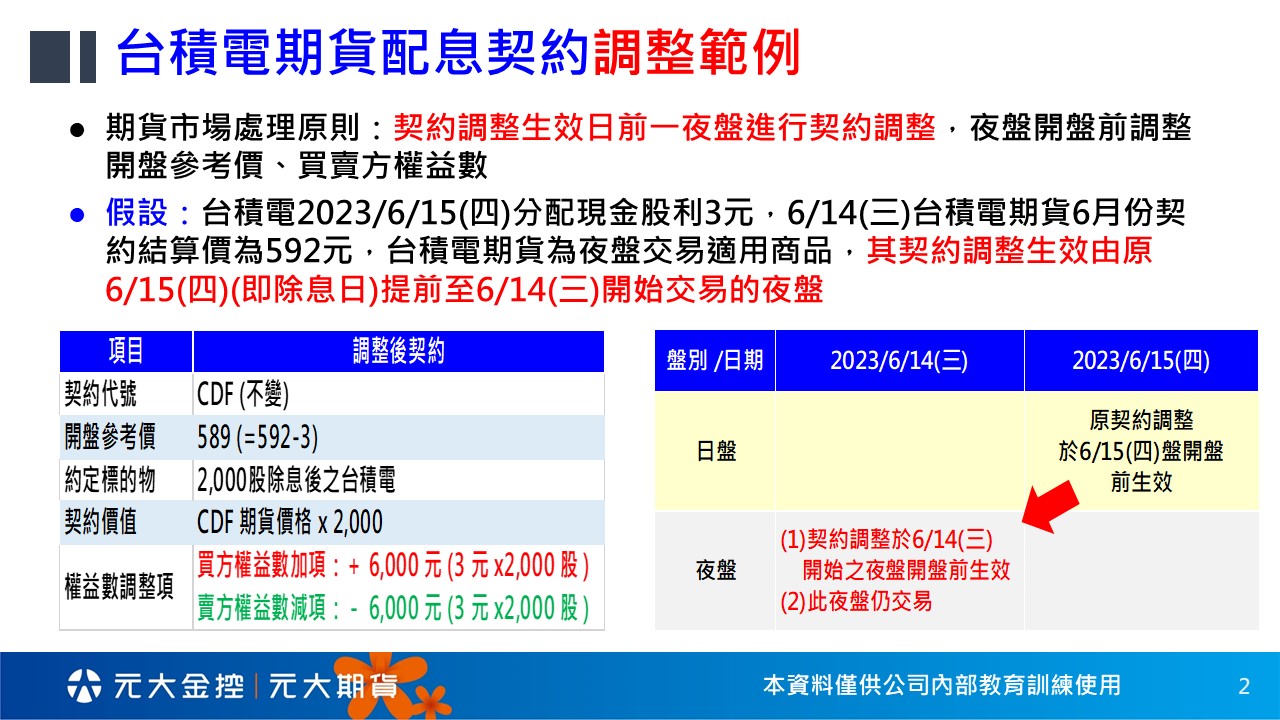 台積電期貨、小台積期貨皆會於除息日前一日夜盤前完成契約調整