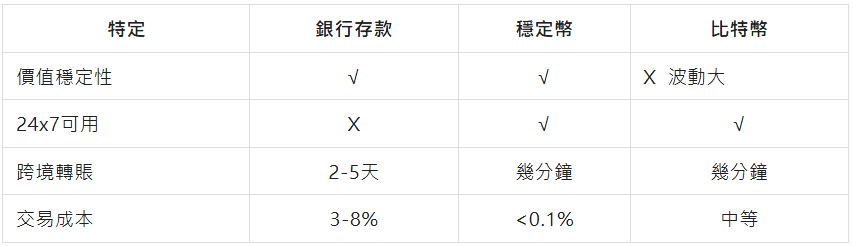 穩定幣其核心優勢:是數字美元或港幣的等價物,結合了加密技術優勢和傳統貨幣優勢: