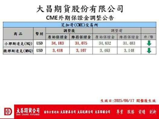 海期保證金變化大,交易所不定期會調整,可以到大昌官網查詢最新保證金:https://www.dcnf.com.tw/Foreign/Fdeposit.htm