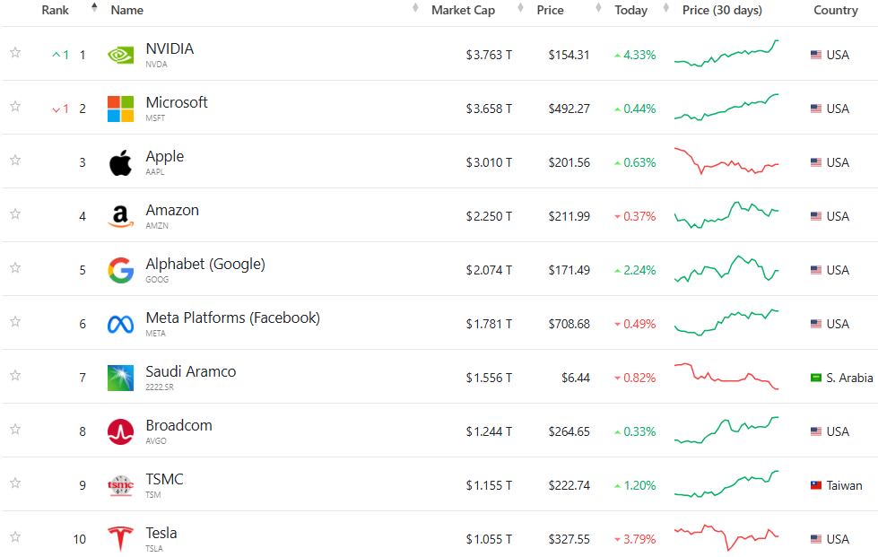AI第一股Nvidia收盤創下歷史新高,以3.7萬億市值重回市值最大的企業!