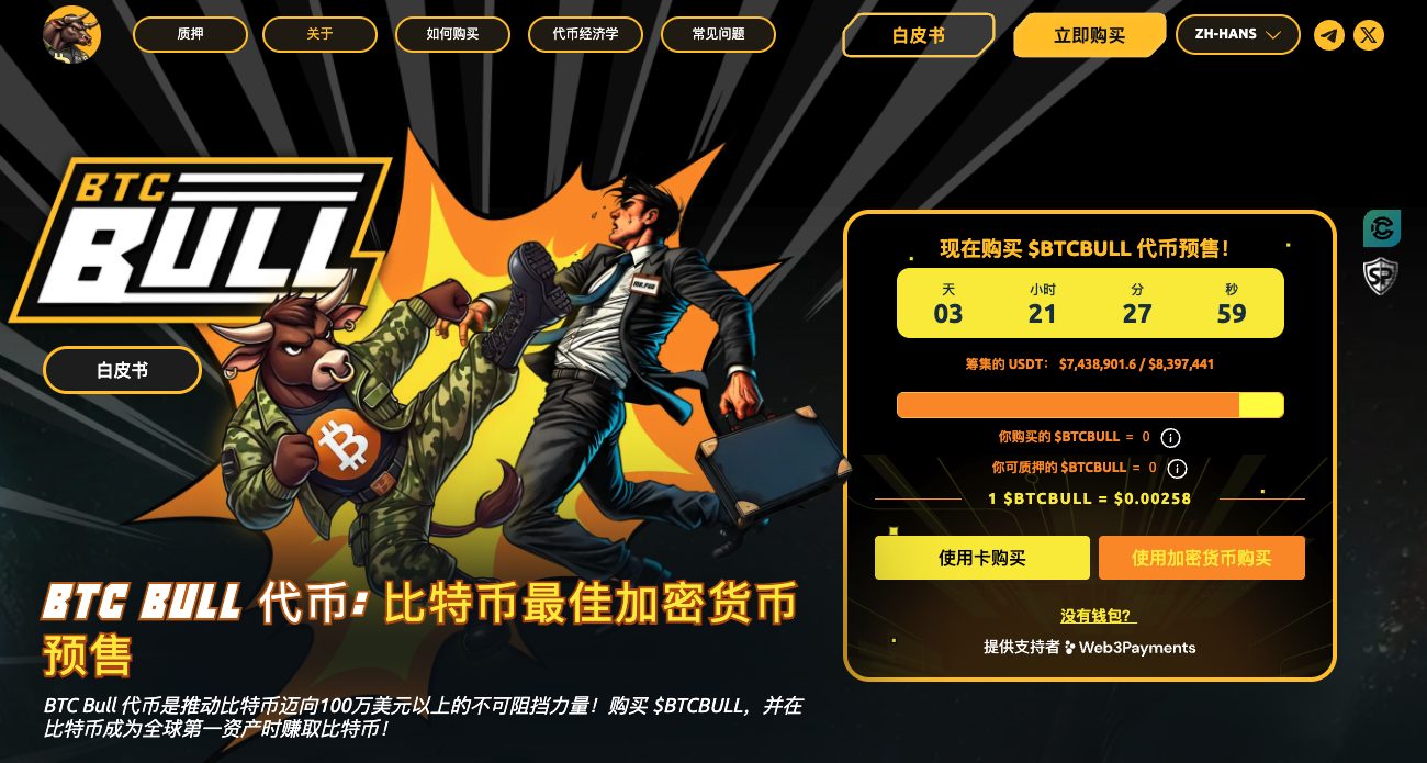但這還只是利好的一部分。該項目還設置了銷毀機制,將從比特幣達到 12.5 萬美元時啟動,並在每上漲50,000美元時重複執行一次。每次銷毀都會減少流通供應,在整體需求迅速抬升的同時,使 $BTCBULL 更加稀缺,進一步釋放價格上行潛力。現時預售僅剩最後3天,已籌資接近750萬美元,Bitcoin Bull化幣正逐漸展現其獨特定位,一個直接與比特幣價格走勢掛鉤的實用型代幣,以現時0.00258美元的預售價格來看,$BTCBULL 仍處於早期階段,尚未被主流市場大規模發掘。