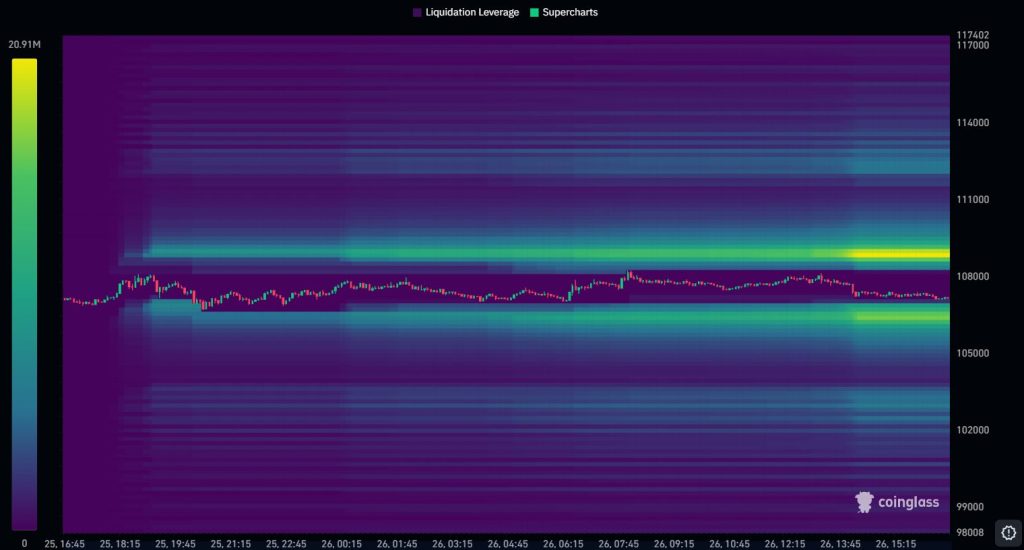 交易員早已普遍預期比特幣將突破 108,000 美元,該價位是重要的流動性區域,一旦突破,就會迫使大量激進的空頭部位被迫平倉。
