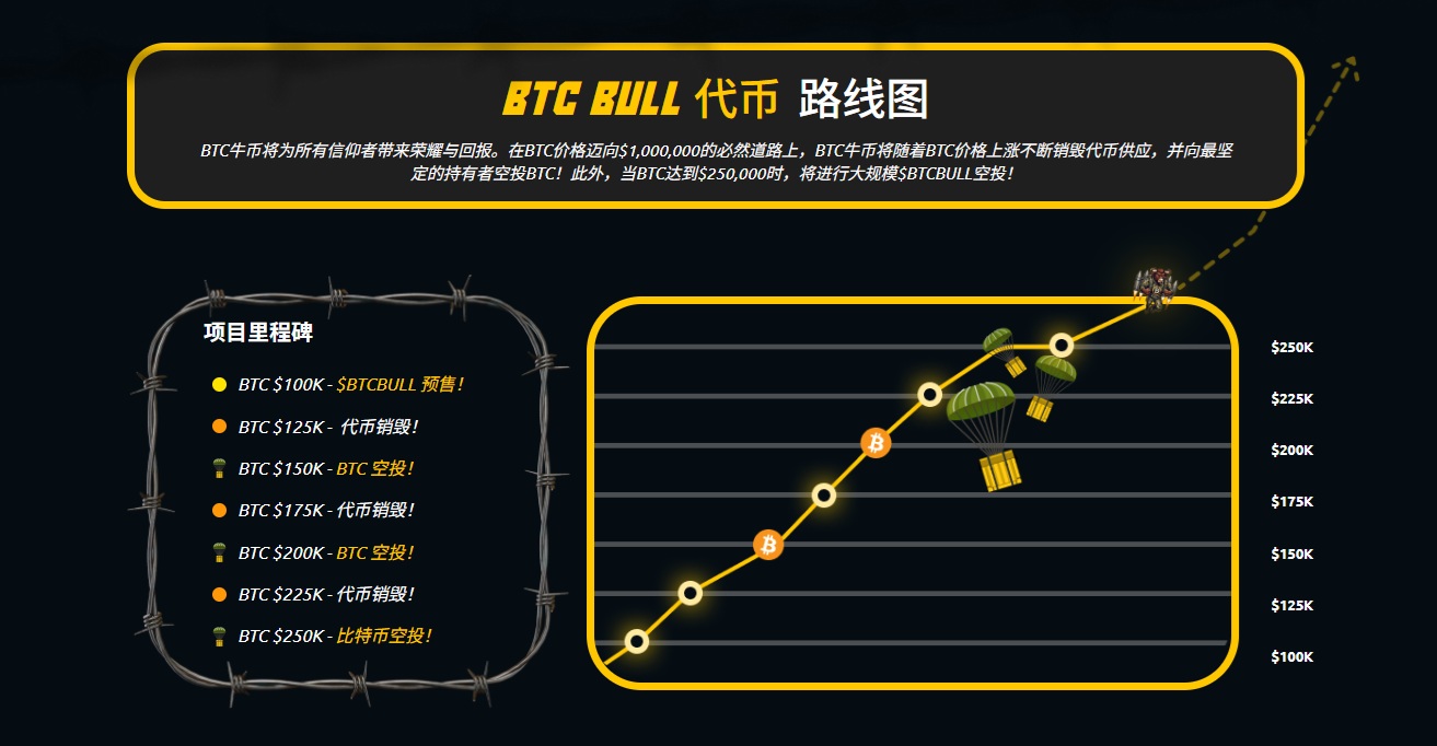 此外,代幣銷毀機制也將在類似的價格里程碑啟動。該機制不是獎勵,而是永久地將BTCBULL代幣從流通中移除。首次銷毀將在BTC達到 $125,000 時觸發,此後每上漲 $50,000(即 $175,000、$225,000 等)將持續執行。