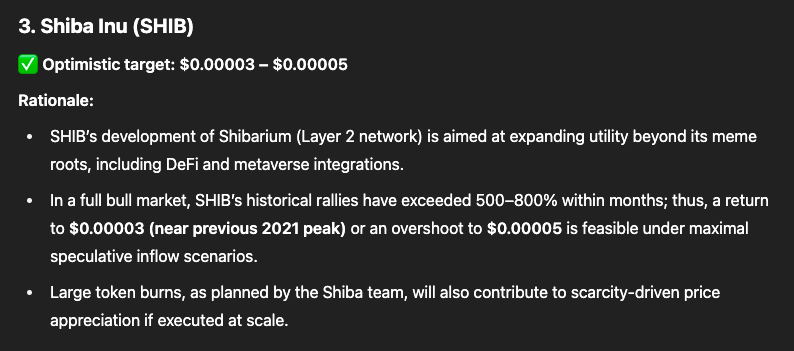 短期阻力位約在 0.000022 美元,若成功突破,下一階段可望挑戰 0.00003 美元。若進一步放量上攻,ChatGPT 預測年底前 SHIB 預計將衝高至 0.00005 美元區間,意味著從目前價格起算潛在漲幅可達四倍。