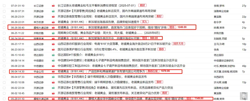 樂觀派國泰海通證券在6月24日給出了996的目標價,但在6月30日老鋪黃金大漲14%的硝煙中已經被摧毀。
