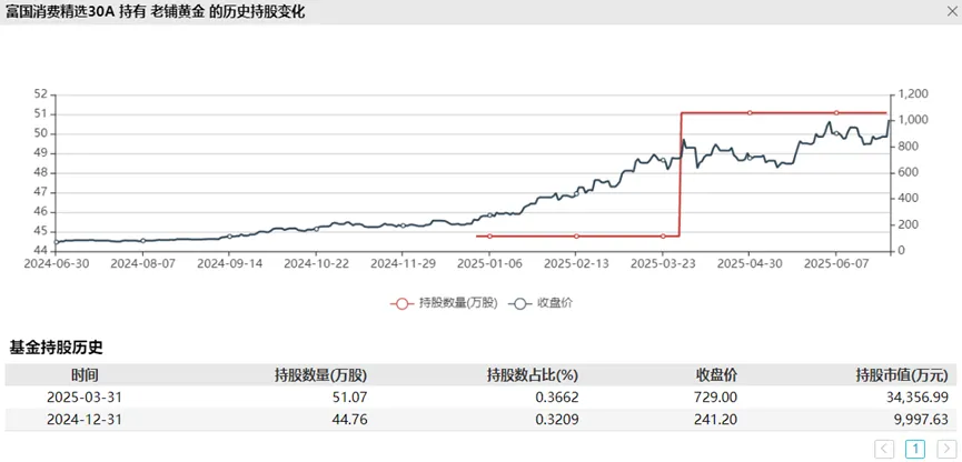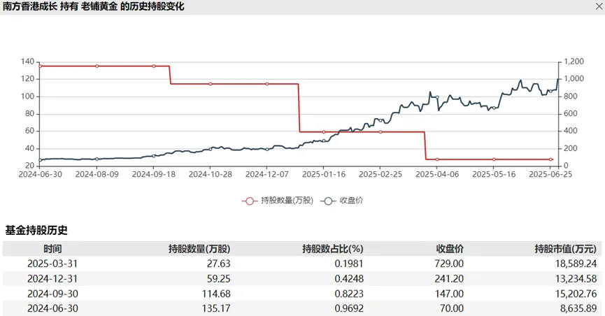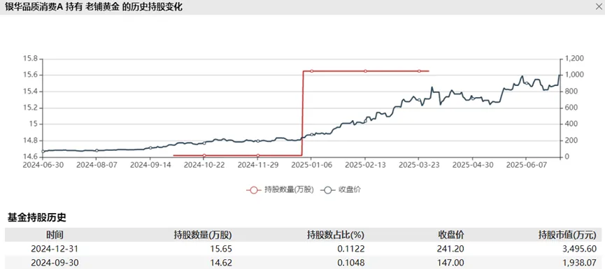 這只基金在去年四季度開始入場,直接買成了第四大重倉股,在老鋪黃金持續上漲的過程中非但沒減倉,還略微做了加倉,目前持倉市值至少漲了3倍。