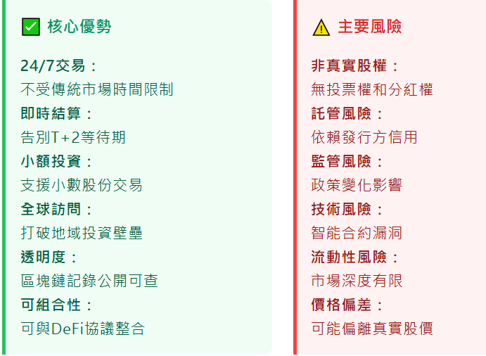 代幣化股票帶來了革命性的交易體驗,但也伴隨著新的風險和挑戰。