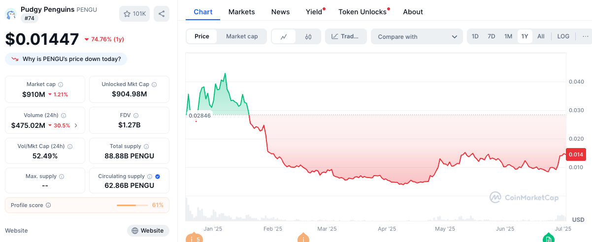隨著比特幣繼續上漲並形成新的歷史新高,預計$PENGU將受益於此趨勢。由於比特幣的強勢,$PENGU可能突破0.0151美元的阻力位,並有可能在接下來的幾天內達到0.0180美元。然而,代幣的價格受到其大持有者的影響,超過47.72%的持有者擁有超過10美元的$PENGU,這些投資者如果決定出售,可能會對價格產生重大影響。