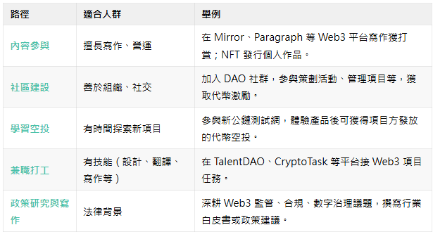 Web3 並非只有程式設計師和投資人能參與,普通人也能從中找到成長路徑:
