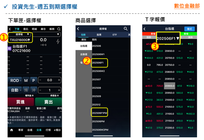 目前主流下單系統已可查詢「週五」相關商品(期貨精靈、點金靈、iTrader、投資先生等),商品名稱會清楚標示。