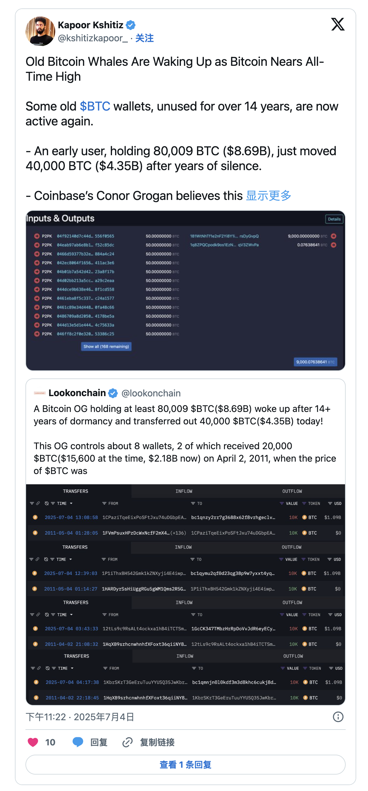這也是十多年來最大規模的「休眠比特幣」異動。