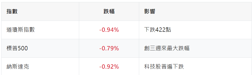 消息一出,全球股市立即做出反應。美國三大股指均出現顯著下跌: