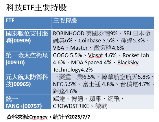 過去幾年美國科技股以科技七雄表現最佳,在台股掛牌的統一FANG+(00757)是表現最亮眼的ETF,績效更遙遙領先富邦那斯達克(00662),不過,近一年來幾個科技主題陸續開花,也創造新秀誕生,是值得投資人留意的趨勢。