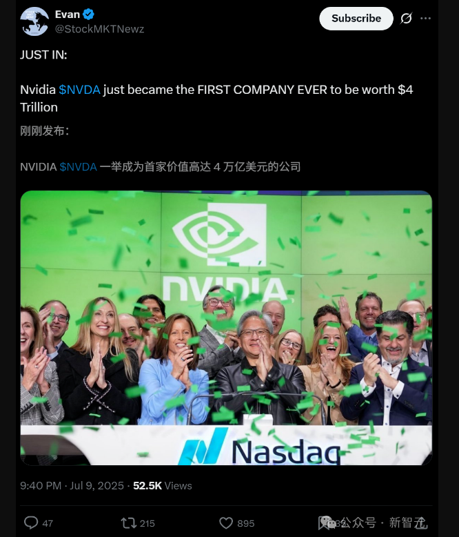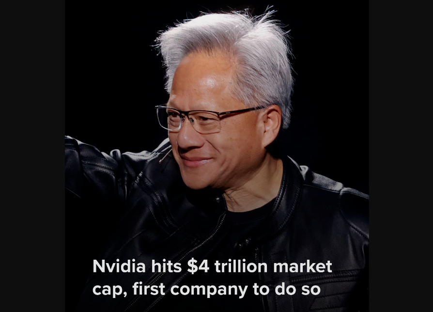 輝達,一舉成為全球首個突破4兆美元市值的公司!