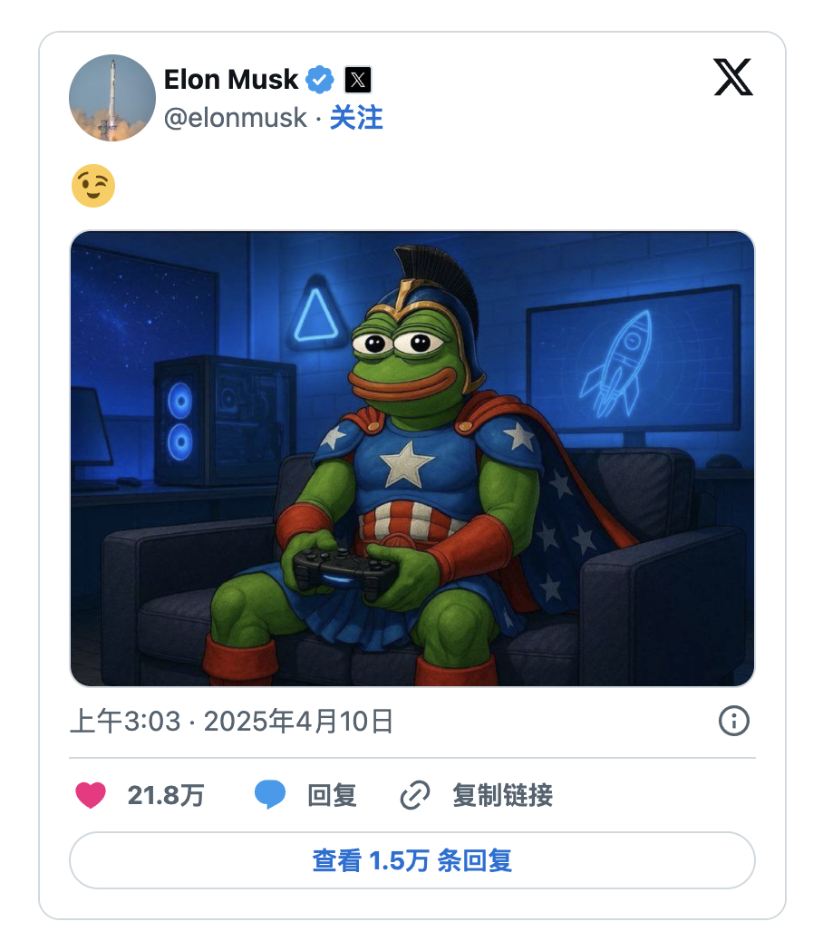 其人氣更因馬斯克一度在 X(前 Twitter)換上 Pepe 主題頭像而再度升溫,迷因效應直線拉滿。