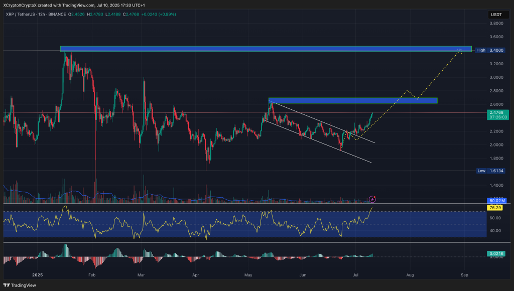 因此,XRP 價格預計在今年夏季結束前上探 $3 關卡,第四季度衝擊 $3.50 將成為潛在主旋律。